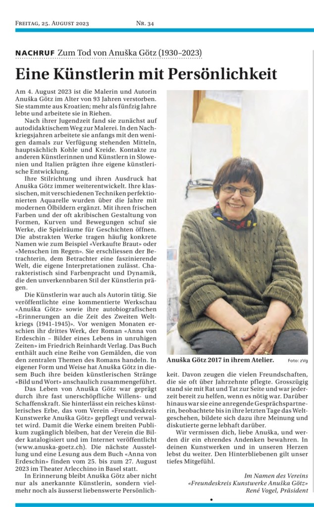 Nachruf Zum Tod von Anuška Götz